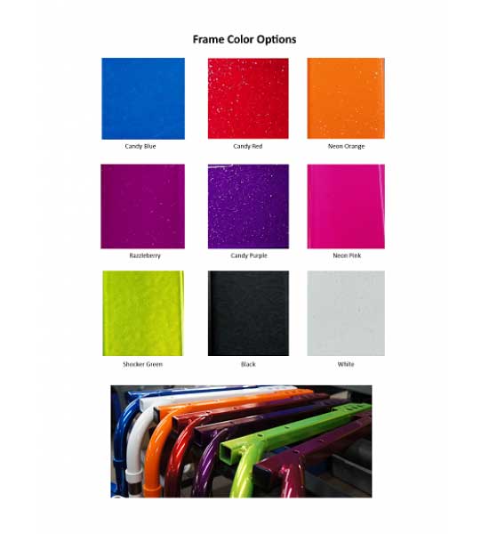 - Frame Colors: Candy Blue, Candy Purple, Candy Red, Shocker Green, Neon Pink, Neon Orange, Raspberry, Black, White (See Options)