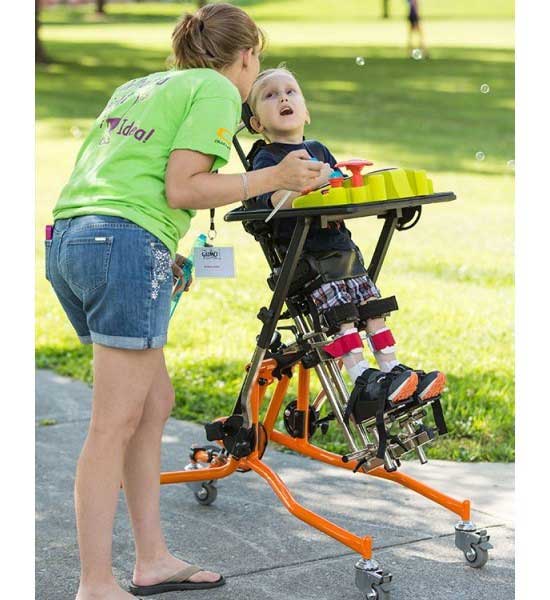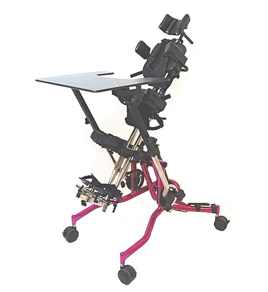 Standing in biomechanical alignment of head, shoulders, spine, pelvis, knees and ankles is part of a postural management and surveillance program that has been shown to dramatically decrease hip subluxation, scoliosis, wind-swept deformity, contractures and pain.